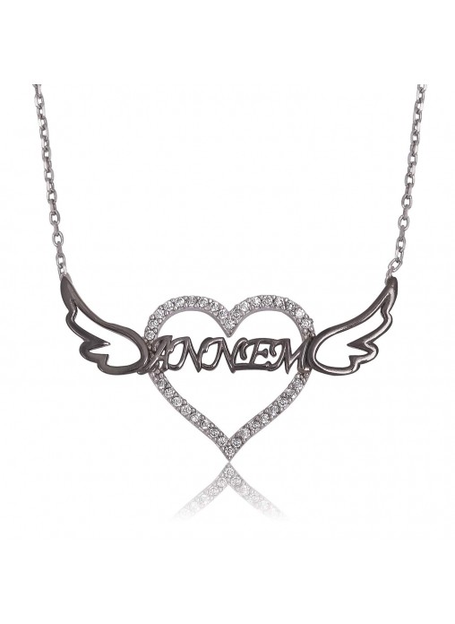 Gümüş Kanatlı Kalp Annem Kolye