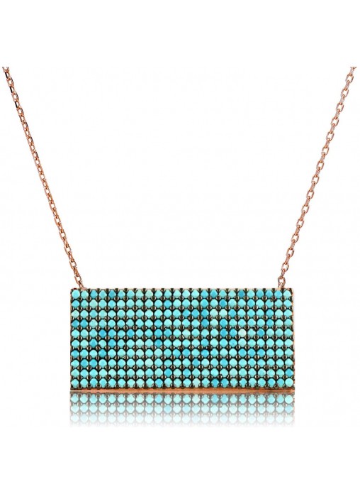 Gümüş Firuze Taşlı Dikdörtgen Kolye