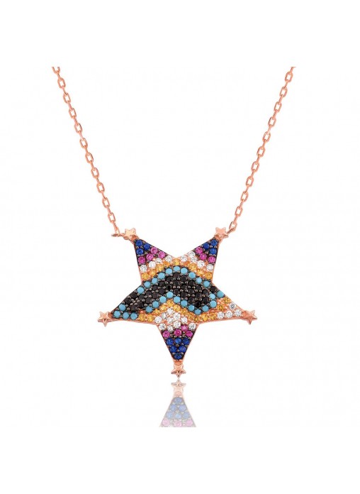 Gümüş Dilek Yıldızı Kolye Gecenin parlak ışıltısını anımsatan yıldız, sembolik olarak evrenin sonsuzluğunu, uzaktaki bir noktayı ifade eder. Parıltının, ışığın, aydınlığın ve umudun sembolüdür. Her aşk özel, her sevilen eşsizdir. Eşsiz aşkların ömür boyu sürecek birlikteliğini dilek yıldızı figürlü kolye ile sevdiğiniz kadının teninde hissettirmeye ne dersiniz... En : 2.40 cm Boy : 2.40 cm Ağırlık : 2.90 gr Ürün hediye kutusunda gönderilecektir... Ürünlerimizin tamamı el emeği ile üretilmiştir. Gümüş ve değerli taşlar nedeniyle ürün ağırlığında ± %5 sapma olabilmektedir.
