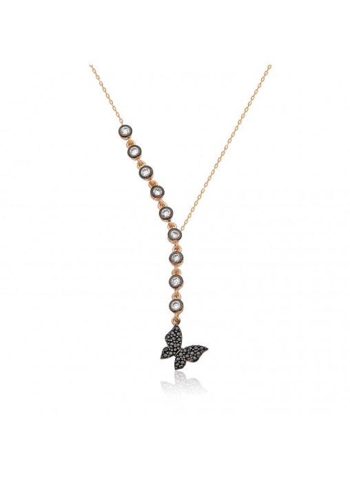 Gümüş Sıra Taşlı Kelebek Kolye Siyah ve rose altın renginin kombinasyonu hiçbir zaman bu kadar moda olmamıştı. Siyah zirkon taşlardan oluşan kelebek motifli gümüş kolye rengi ve deseni ile göz kamaştırıyor. Dikkat çekici bir görünüm için sıra taşlardan ve ucundaki kelebekten oluşan gümüş kolye sevgililer günü ve yıl başı gibi özel günler için ideal bir hediye seçeneği olabilir. En : 1.50 cm Boy : 7.30 cm Ağırlık : 3.50 gr Ürün hediye kutusunda gönderilecektir... Ürünlerimizin tamamı el emeği ile üretilmiştir ve değerli taşlar nedeniyle ürün ağırlığında ± %5 sapma olabilmektedir.