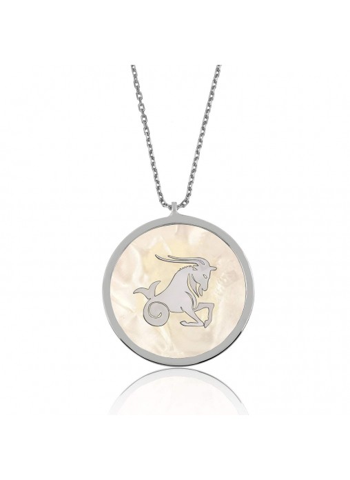 Gümüş Sedef Taşı Oğlak Kolye