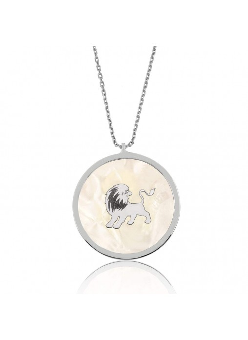 Gümüş Sedef Taşı Aslan Kolye