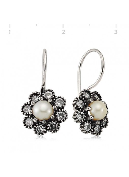 Zirkon Taşlı Sallantılı Gümüş İnci Küpe