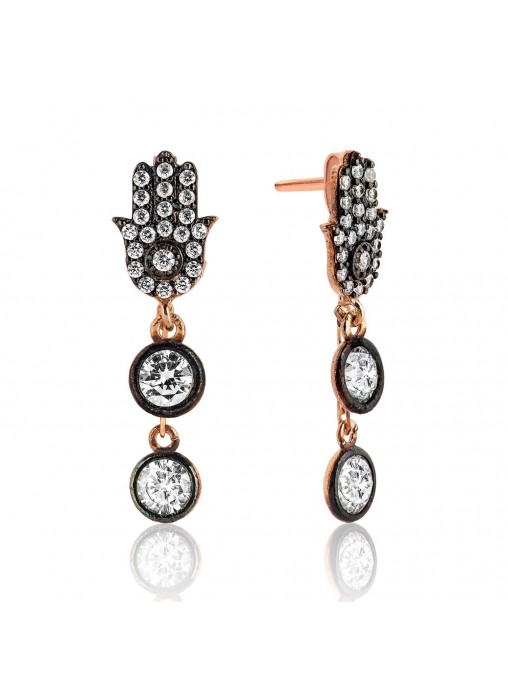 Gümüş Fatma'nın Eli Küpe Hz.Fatma'nın Eli olarak bilinse de Arapça'da 'Hamse Eli' diye anılır. Hamse, beş anlamına gelir ve bir elin parmak sayısını gösterir. Hz.Fatma bir gün mutfakta helva kavururken, eşi Hz. Ali'yi genç ve güzel bir odalıkla görür ve pişen helvaya elini daldırır ancak hiç bir şey olmaz, helvayı böyle kavurmayı devam eder. O günden sonra elinin kutsallığına, gücüne adeta yenilmezliğine inanılır. Her güçlük adeta onun eliyle aşılacaktır. İslam ve Musevilik'te yer alan bu ortak sembolün, geniş bir coğrafyada gücüne günümüzde halen inanılmaktadır. Sizin olduğu kadar sevdiklerinizin de keyifle takacağı bu küpe, sevginizi paylaşabileceğiniz güzel hediyelerden biri olacaktır. En : 0.80 cm Boy : 2.50 cm Ağırlık : 2.30 gr Ürün hediye kutusunda, gümüş silme bezi ile gönderilmektedir... Ürünlerimizin tamamı el emeği ile üretilmiştir ve değerli taşlar nedeniyle ürün ağırlığında ± %5 sapma olabilmektedir.