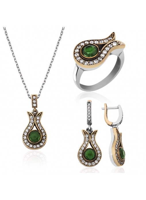 Gümüş Zümrüt Taşlı Otantik Lale Set