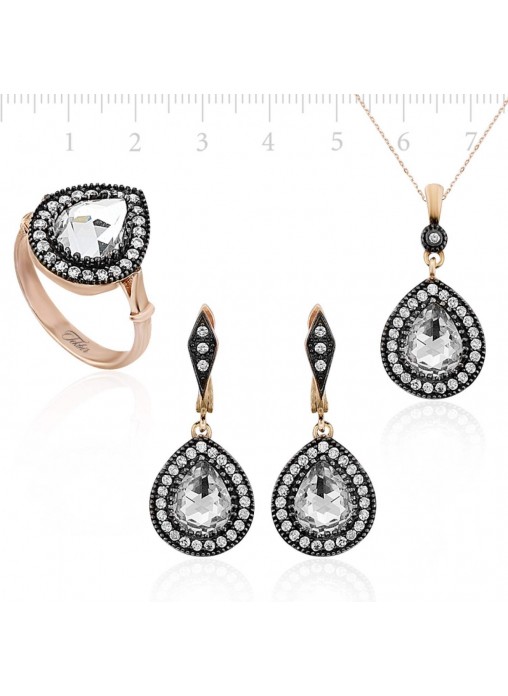 Gümüş Damla Set Küpe Uzunluğu :1.3x3.3cm Kolye Uzunluğu :1.3x2.8 cm Yüzük :1.3x1.6 cm Zincir Uzunluğu Ortalama 45 cm'dir. Ürün hediye kutusunda gönderilecektir... Ürünlerimizin tamamı el emeği ile üretilmiştir ve değerli taşlar nedeniyle ürün ağırlığında ± %5 sapma olabilmektedir.