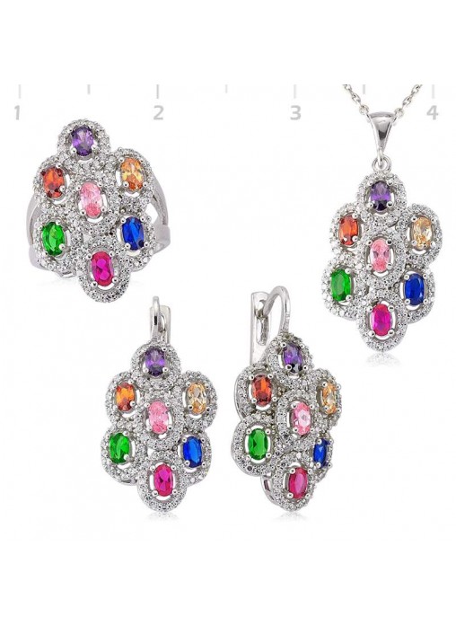 Gümüş Kır Çiçeği Set Gümüş renkli taşlı kır çiçeği set ile dünyanıza renk katmaya ve yaşam enerjinizi artırmaya ne dersiniz... Zirkonun göz alıcı parıltısı ve renkli taşları çiçek set ile doğanın ritmine ayak uyduruyor. Sizin olduğu kadar sevdiklerinizin de keyifle takacağı bu set, aynı zamanda sevginizi paylaşabileceğiniz en güzel hediyelerden biri olacaktır. Küpe Uzunluğu :2x3.5 cm Kolye Uzunluğu :2x4 cm Yüzük :2x3 cm Zincir Uzunluğu Ortalama 45 cm'dir Ürün hediye kutusunda gönderilecektir... Ürünlerimizin tamamı el emeği ile üretilmiştir. ve değerli taşlar nedeniyle ürün ağırlığında ± %5 sapma olabilmektedir.