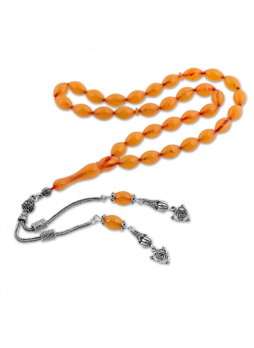 Gümüş Püskül Sarı Sıkma Kehribar Tesbih