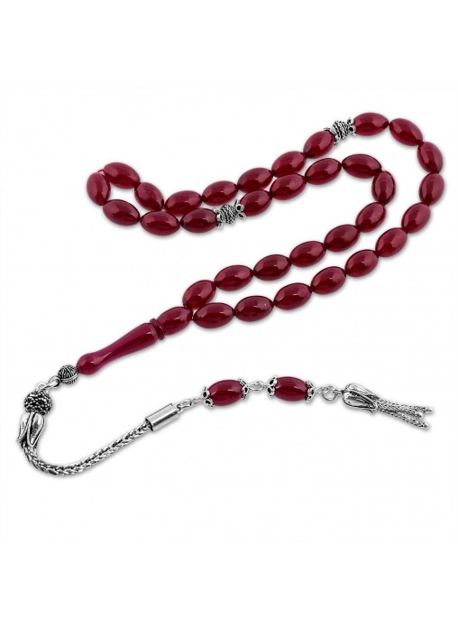 Gümüş Püskül Bordo Sıkma Kehribar Tesbih
