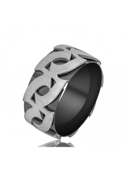 Gümüş Fantazi Siyah Desenli Erkek Alyans