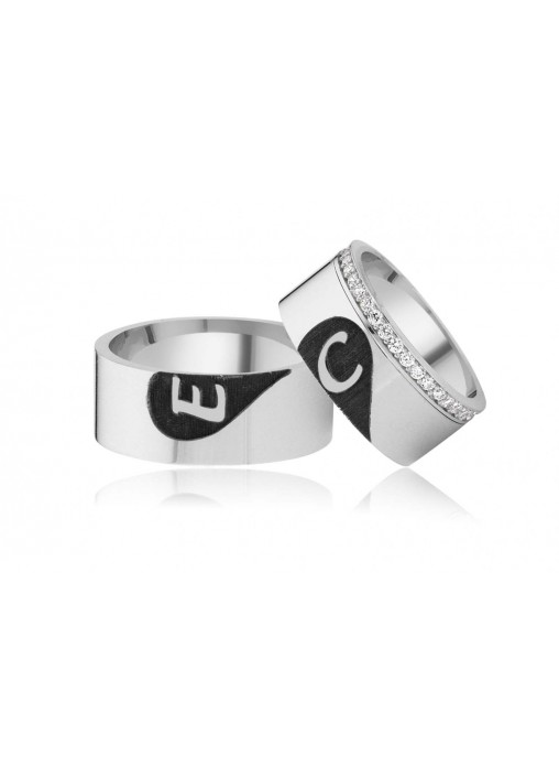 Gümüş Kişiye Özel Taşlı Çift Kalp Alyans