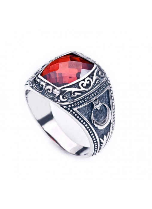 Gümüş Akik Taşlı Ayyıldız Erkek Yüzük