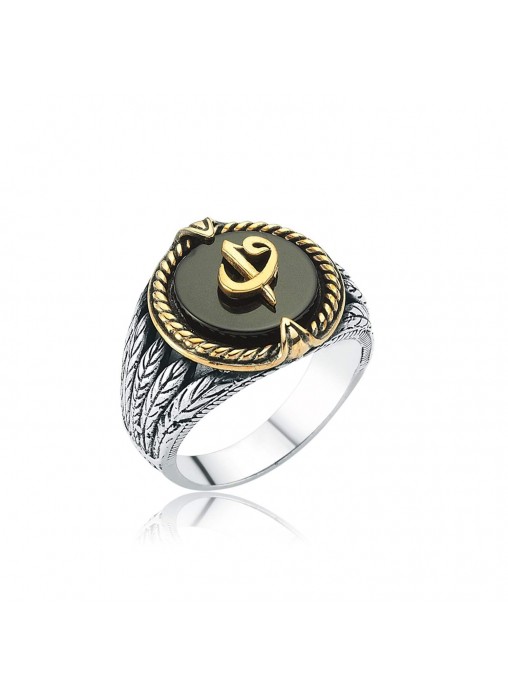 Gümüş Oniks Taşlı Elif Vav Yüzük