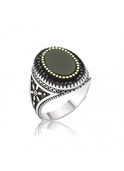 Siyah Oniks Taşlı Gümüş Erkek Yüzük