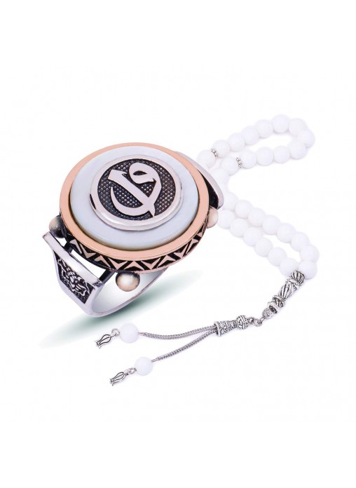 Gümüş Sedef Taşlı Elif Vav Yüzük ve Tesbih Kombini