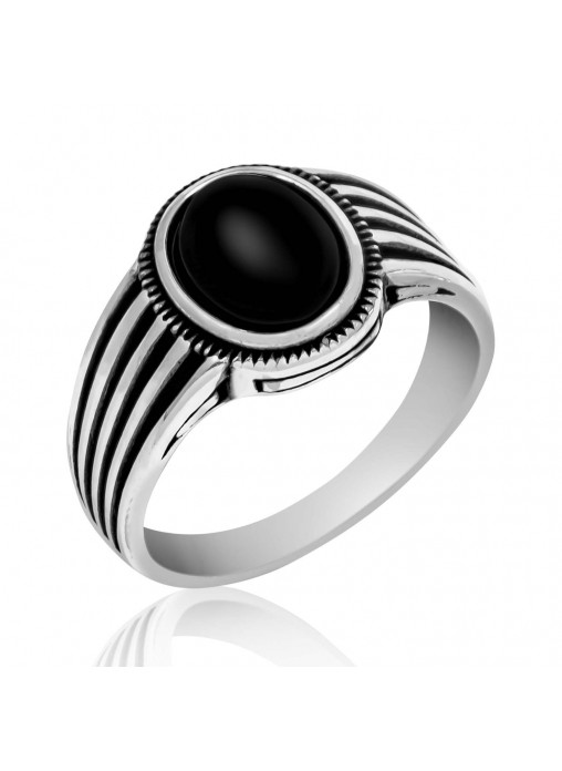 Gümüş Oniks Taşlı Çizgili Erkek Yüzük