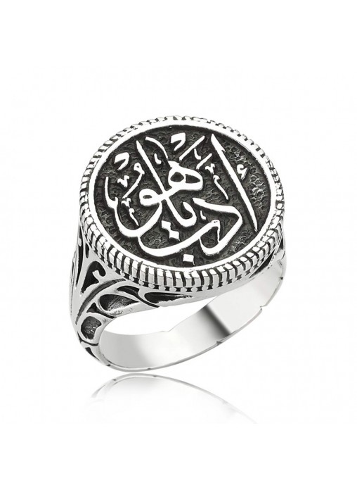Edeb Ya-hu Yazılı Gümüş Erkek Yüzük
