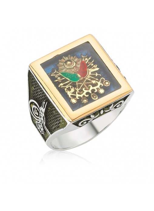 Şeffaf Mineli Osmanlı Devlet Arması Erkek Yüzük