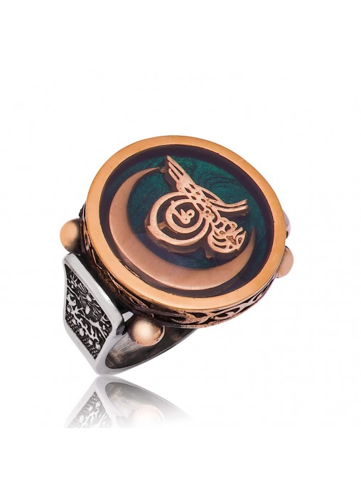 Gümüş Hilal ve Tuğra Figürlü Erkek Yüzük