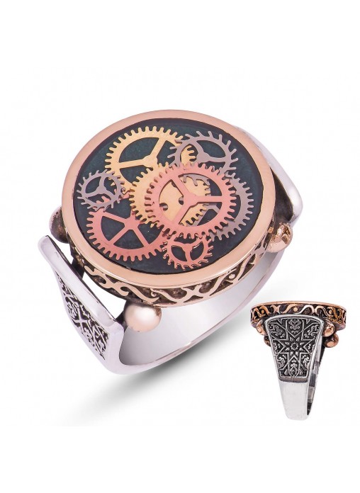 Yeşil Mineli Saat Çarkı Gümüş Erkek Yüzük