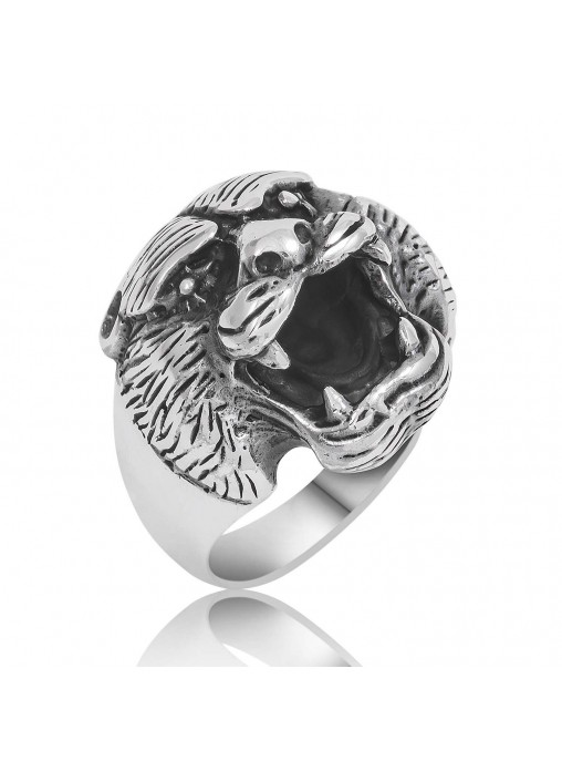 Gümüş Kaplan Kafası Erkek Yüzüğü