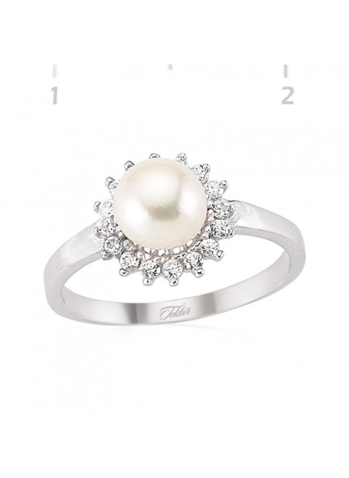 Gümüş Zirkon Taşlı İnci Yüzük