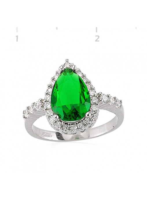 Gümüş Yeşil Taşlı Damla Yüzük