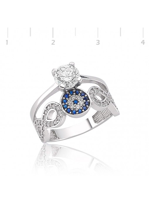 Gümüş Tektaş Nazarlı Sonsuzluk Yüzük
