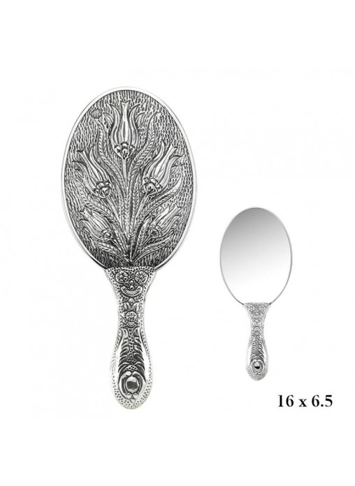 Gümüş 925 Ayar Lale Desenli El Aynası Ürün Boyu : 16 cm Ürün Genişliği : 6.5 cm Kendine özgün desenlerdeki gümüş el aynalarımız siz ve sevdikleriniz için en güzel aksesuarlardandır. Farklı ebatları ile çantanızda taşımaya uygundur. Ürün hediye paketinde gönderilecektir... Ürünlerimizin tamamı el emeği ile üretilmiştir. ve değerli taşlar nedeniyle ürün ağırlığında ± %5 sapma olabilmektedir.