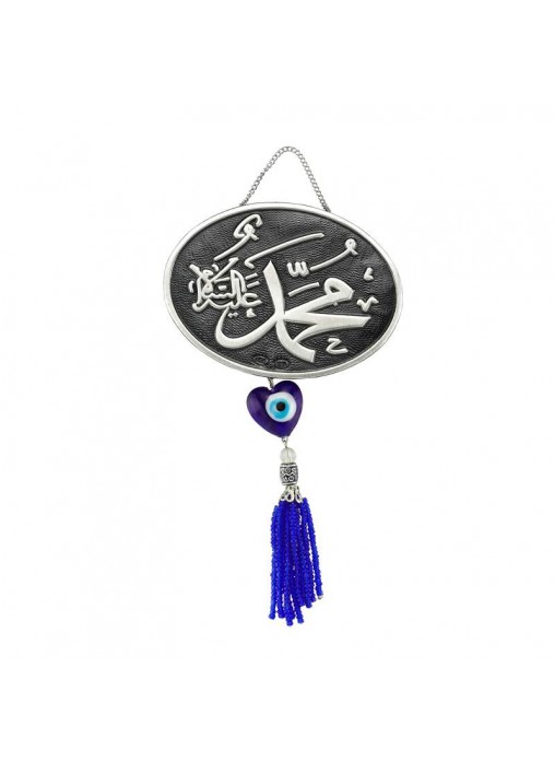 Muhammed yazılı nazar boncuklu, püsküllü gümüş ayet ile duvarlarınızı süsleyin. Hediye etmek sevdiklerinizi sevindrimek için özel bir seçim.