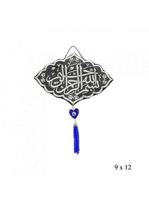 Besmele yazılı nazar boncuklu, püsküllü gümüş ayet ile duvarlarınızı süsleyin. Hediye etmek sevdiklerinizi sevindrimek için özel bir seçim. Ürün Boyu : 9 cm Ürün Genişliği : 12 cm Ürün hediye paketinde gönderilecektir... Ürünlerimizin tamamı el emeği ile üretilmiştir. ve değerli taşlar nedeniyle ürün ağırlığında ± %5 sapma olabilmektedir.