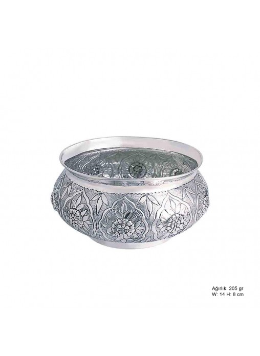 GUMUSH 925 Çiçek Desenli Gümüş Şekerlik Ürün Cinsi : Gümüş Ayar : 925 Genişlik : 14 cm Yükseklik : 8 cm Ağırlık : 205 Gr Profesyonel gümüş ustaları tarafından %100 el işçiliği ile üretilen çiçek desenli gümüş şekerlik göz alıcı görüntüsüyle değerli müşterilerimizin beğenisine sunulmuştur. Bu güzel ürünlerimizi ister sevdiklerinize gümüş ev hediyesi olarak düşünebileceğiniz gibi, hem de kendi evinizde masa ve gümüşlüklerde meyvelik şekerlik veya çikolatalık olarak da sergileyebilirsiniz.. Teslimat süresi : 1 ile 15 gün arasında ürün kargoya verilir