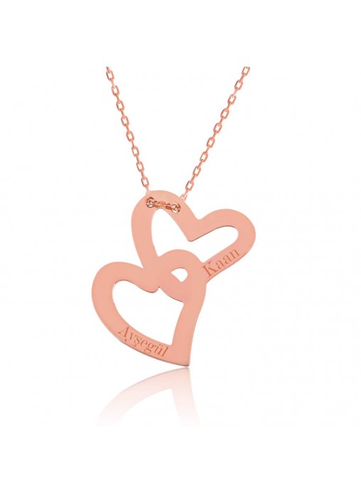 Gümüş Birleşmiş Kalpler İsimlik Kolye