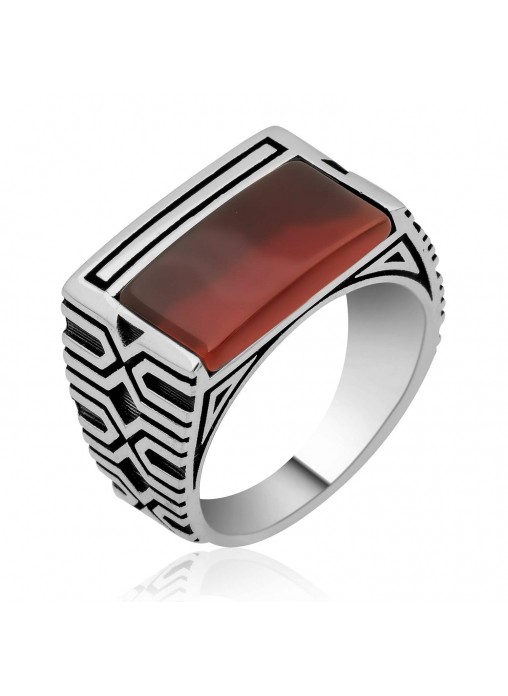 Gümüş Kahverengi Akik Erkek Yüzük